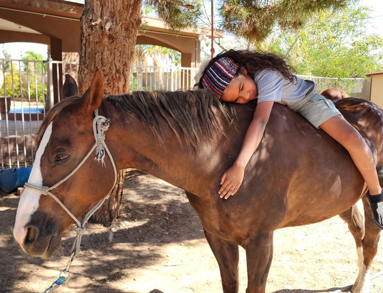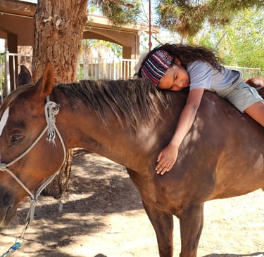 Every Sunday, in the peaceful surroundings of Loan Mountain Park, horses Rayo and Grano de Oro become guides and companions in a profound therapeutic journey, where the connection between human and animal awakens trust, empathy, and inner balance.