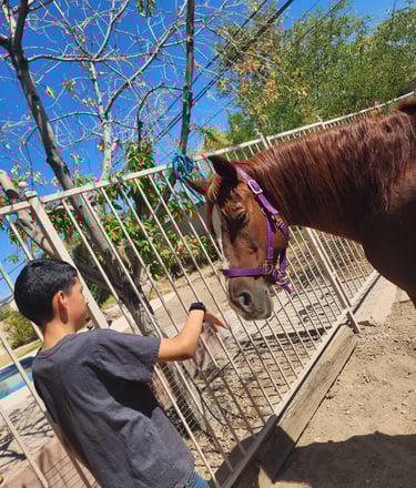 The “Wings on Earth” program was born from a partnership between Blossom Faith Foundation and Yudit Pinedo de Sánchez, director of Colibríes School, with the purpose of providing a space for physical, emotional, and spiritual healing through equine-assisted therapy.